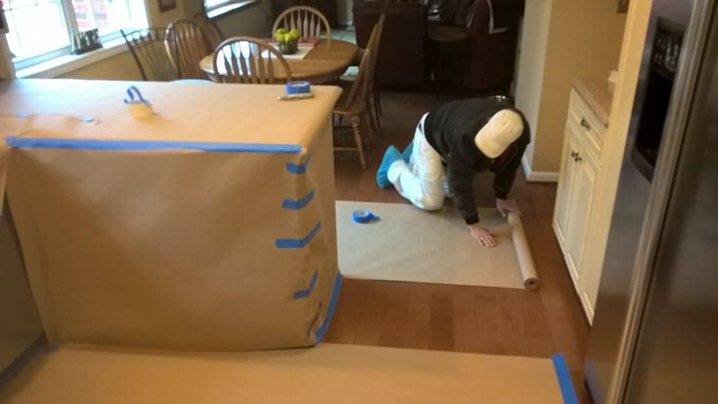 At Lakeside Painting and Plaster we understand that protecting your property during the process is just as important as what the finished product looks like. We strive for the highest quality and integrity in our work. In order to achieve this we take every precaution possible to tape, wrap, cover, and protect your home from paint and construction dust as you can see in the images below. We treat every home like its our own from the time we start to the time we finish.